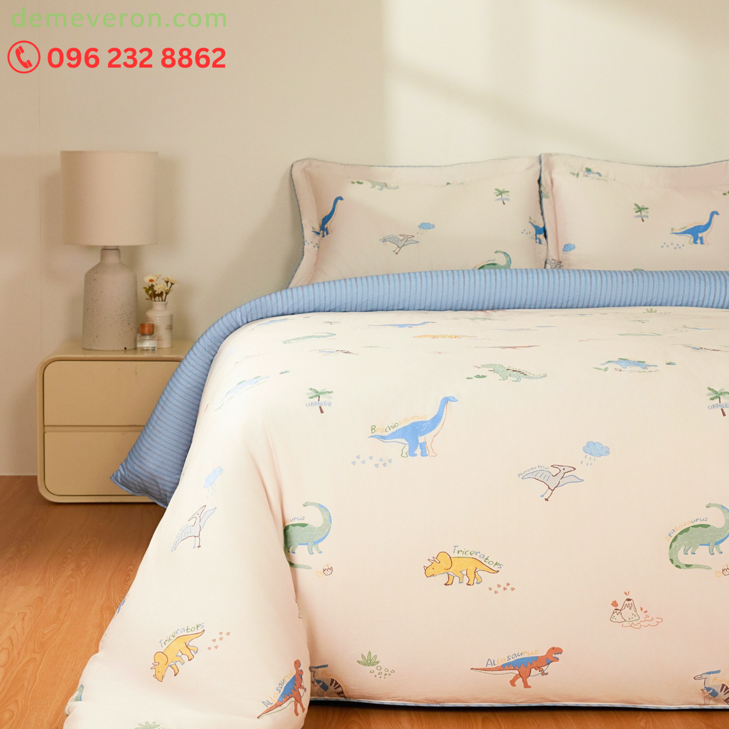 Sản phẩm sử dụng chất liệu Cotton cao cấp – mềm mại, thoáng khí, thấm hút tốt, an toàn cho làn da nhạy cảm của trẻ nhỏ. Đây là lựa chọn lý tưởng cho các bậc phụ huynh muốn mang đến giấc ngủ thoải mái và không gian học tập, vui chơi đầy cảm hứng cho con.